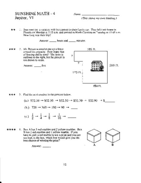 Read Online Grade 4 Sunshine Math Answers Reader