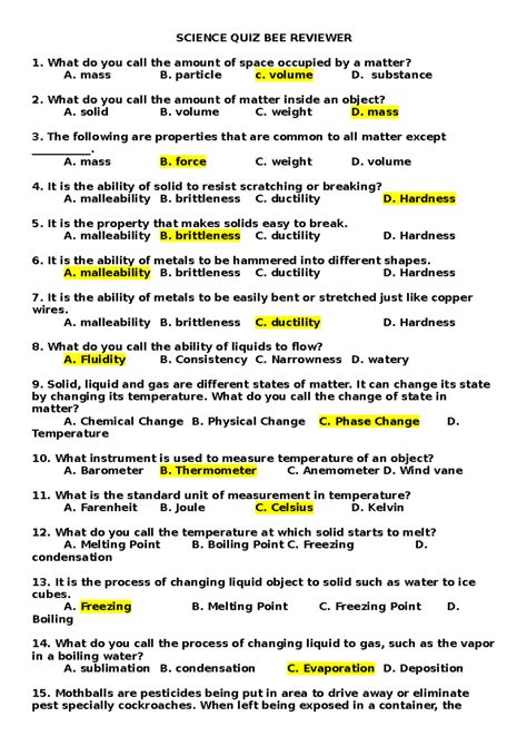 Read Online Science Quiz Bee For Elementary Level Question And Answer Epub